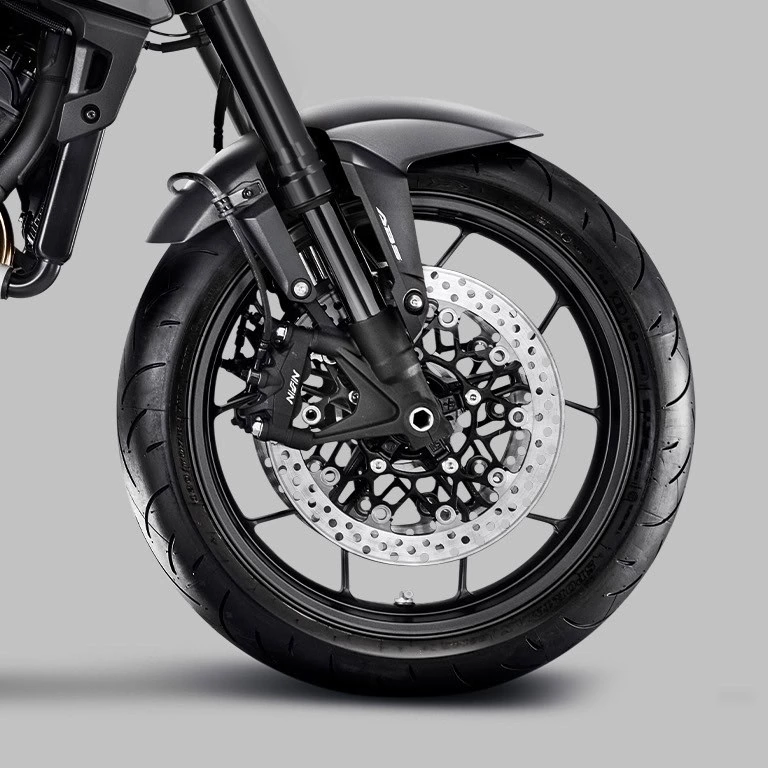 Também dotado de tecnologia ABS, o freio traseiro é composto por disco de cáliper de pinça simples e oferece alto controle de frenagem.